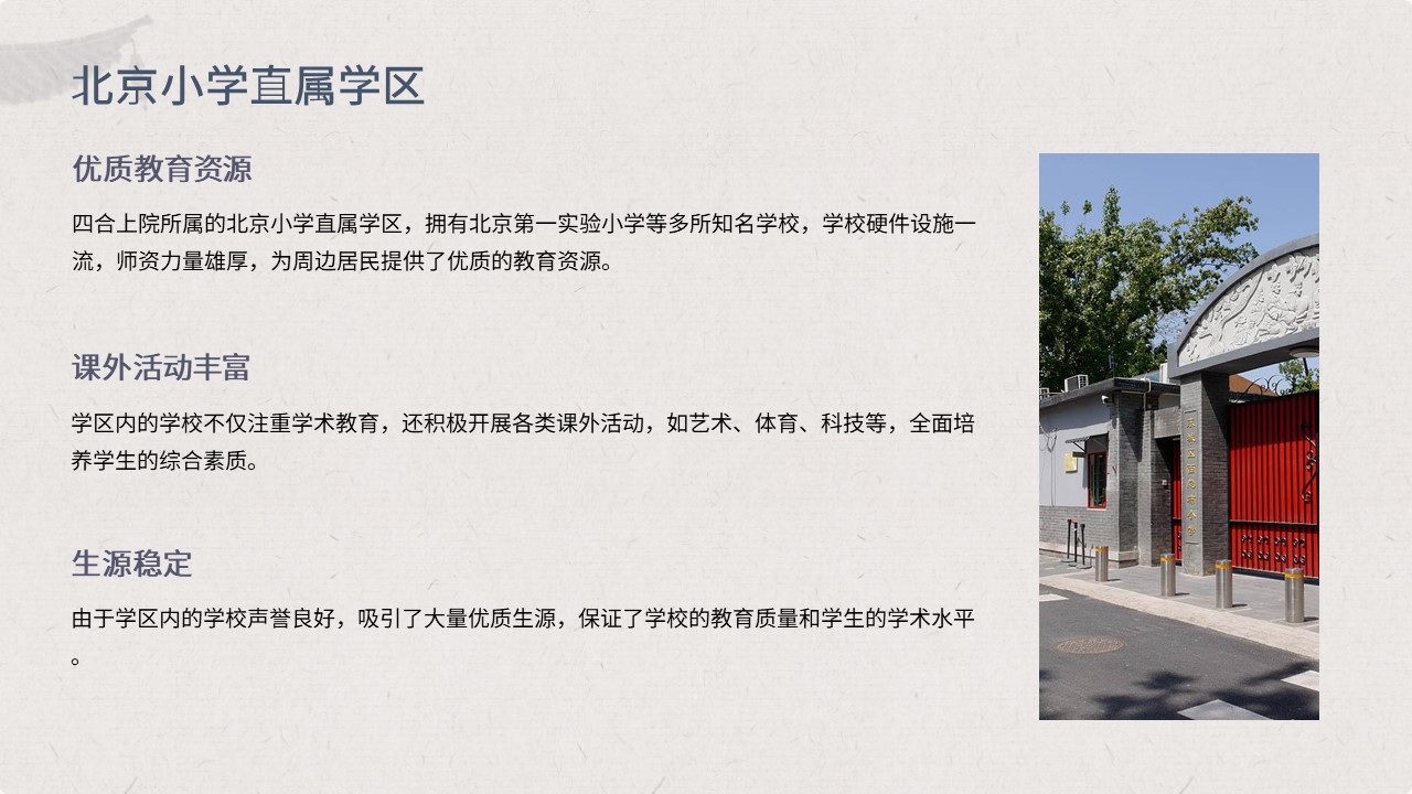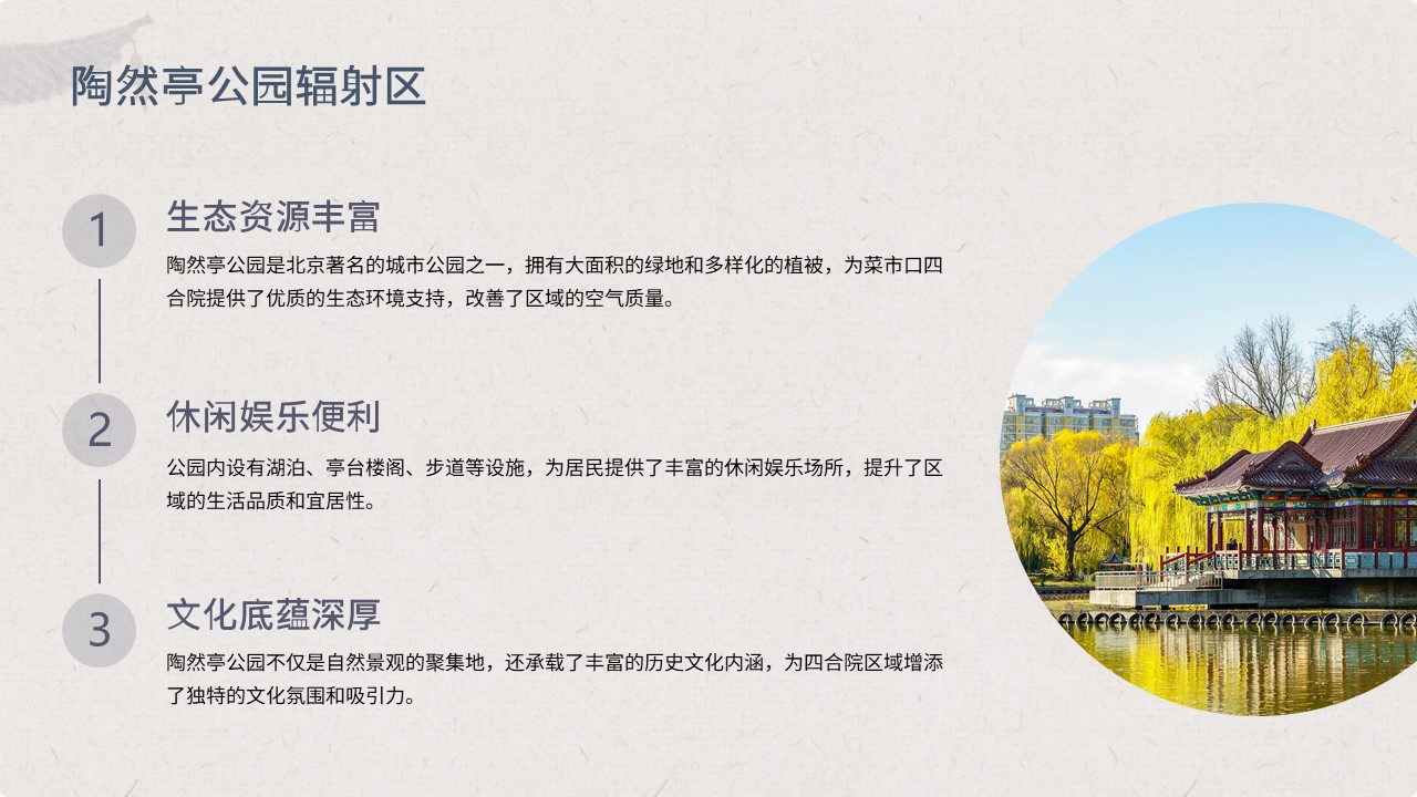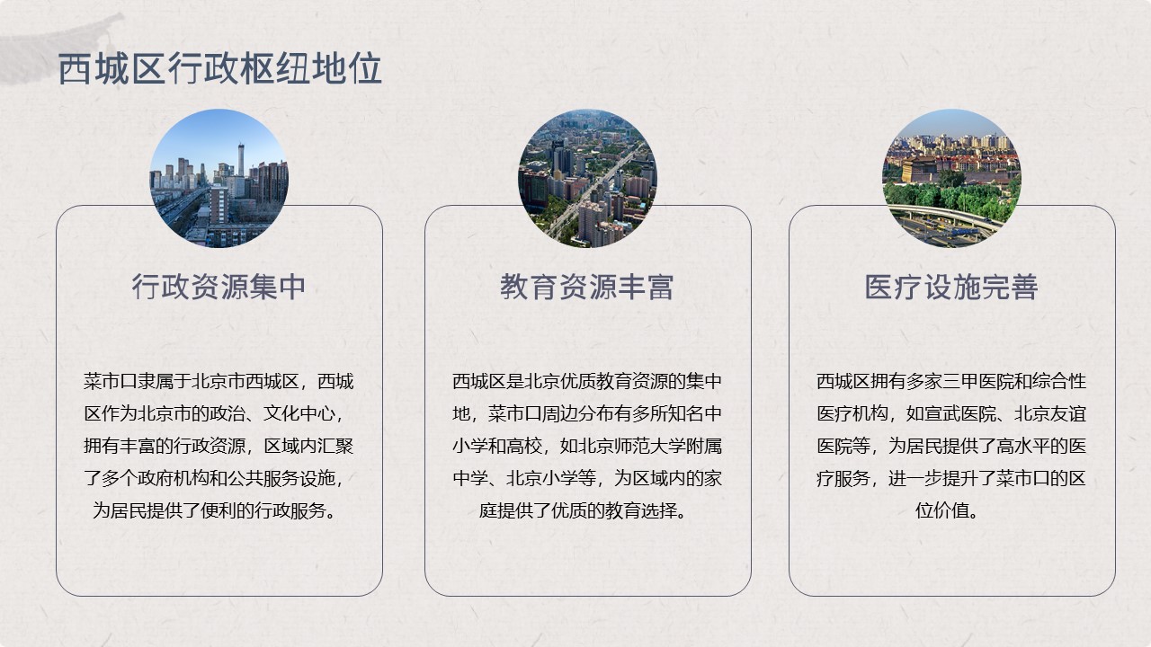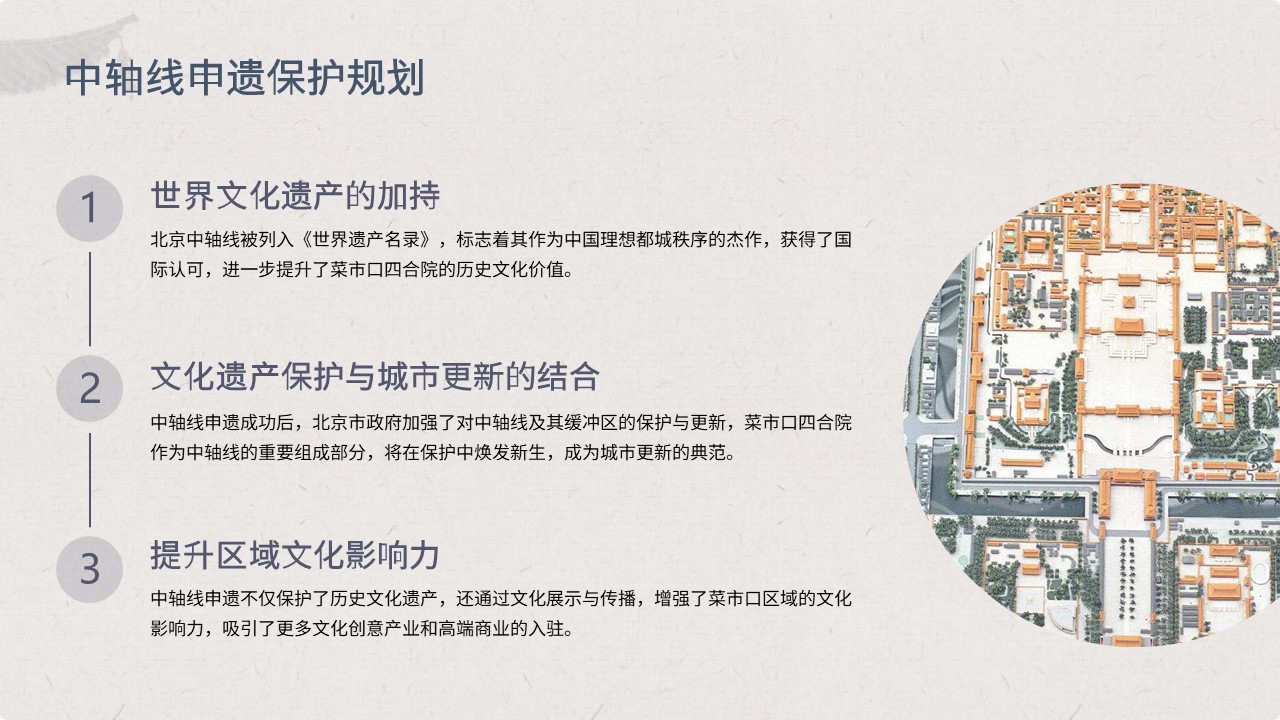 (1)标的资产位于北京市西城区菜市口附近,地处城市西南部的交通核心地带,与宣武门外大街、广安门内大街、骡马市大街相连,是连接京城内外的重要交通节点,地铁4号线菜市口站及多条公交线路(如5路、6路、48路、57路)在此交汇,极大提升了区域通达性。(2)三处四合院建筑面积分别为146.08㎡、85 ㎡、211.4 ㎡,精装修。